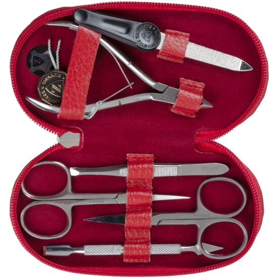 Маникюрный набор на молнии, ZINGER, трапеция, MS-7103, 6 предметов, чехол красный