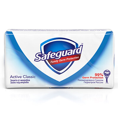 Сейфгард Актив / Safeguard Active - Мыло антибактериальное Классическое Ослепительно Белое, 90 г