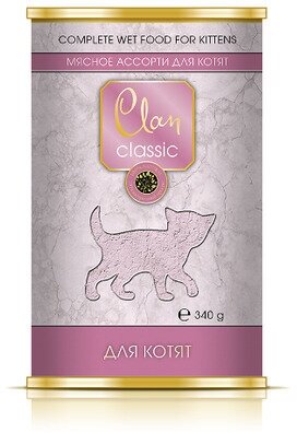 Корм полнорационный консервированный Clan CLASSIC для котят, Мясное ассорти, 340г, 12 шт.