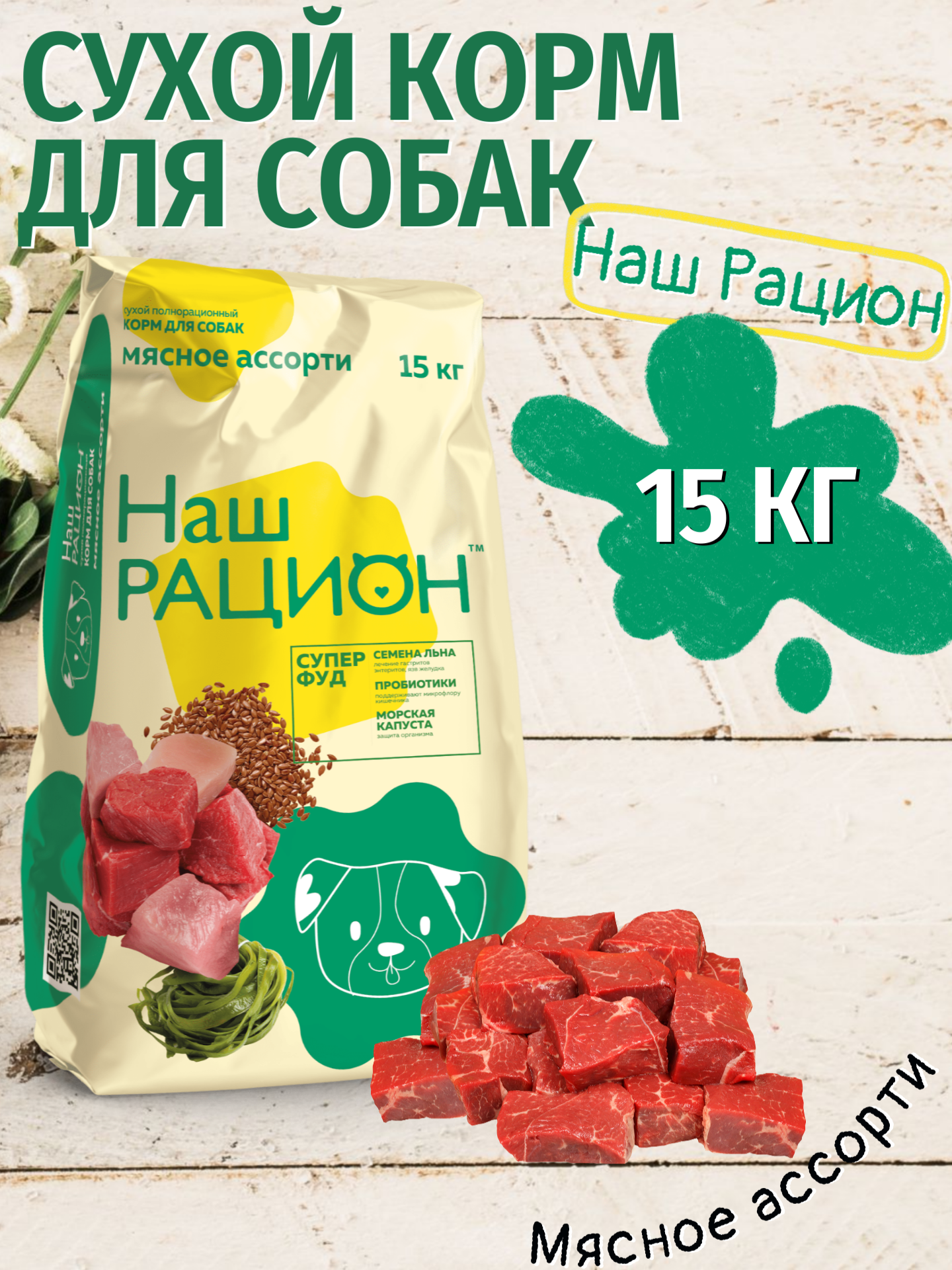 Сухой корм для собак Наш Рацион мясное ассорти 15 кг