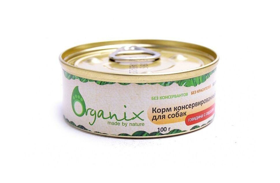 Корм влажный Organix для собак говядина с сердцем, 100 г