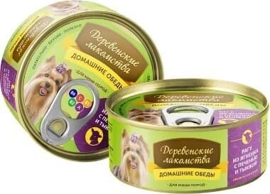 Влажный корм для собак мини-пород "Деревенские лакомства - Домашние обеды" Нежная индейка с рубцом и цукини, банка 100 гр.*5 штук