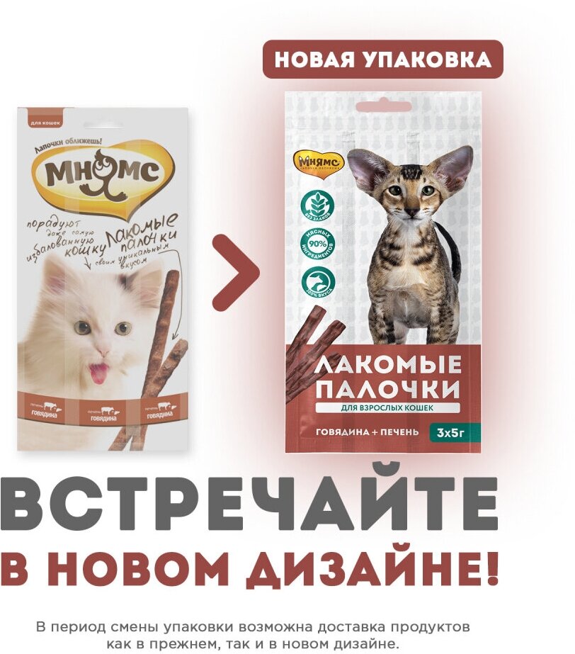 Мнямс Лакомые палочки для кошек говядина/печень, 3 шт.по 5 гр