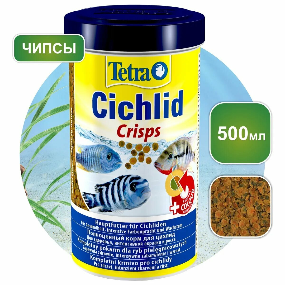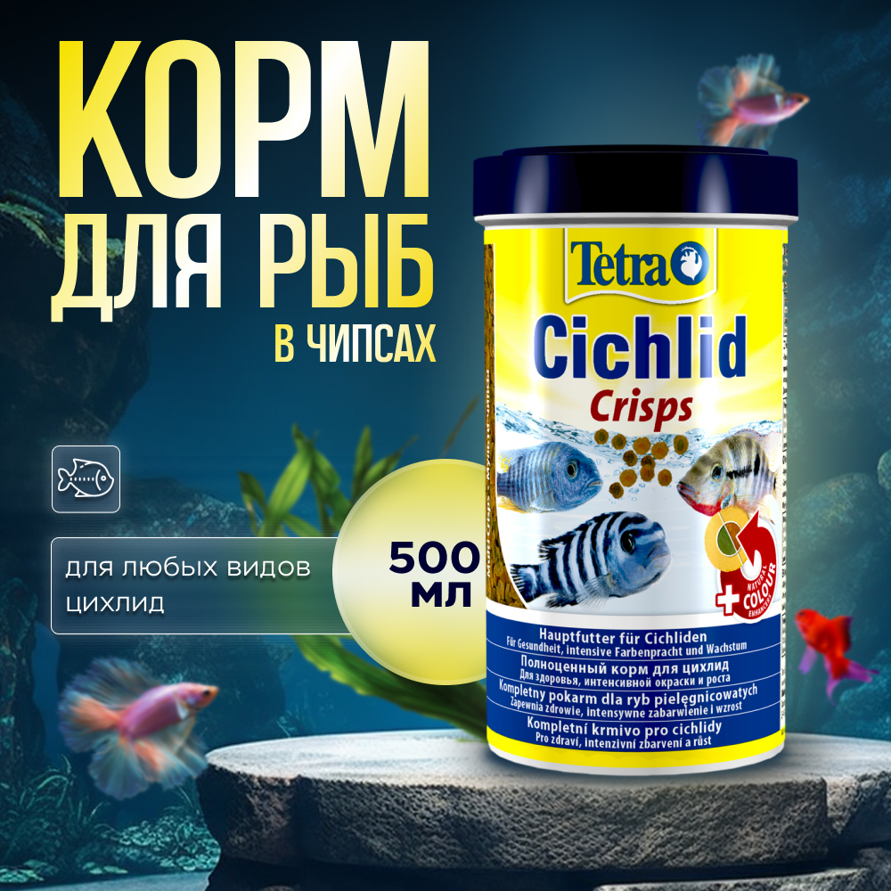 Корм Tetra Cichlid Crisps, чипсы, для всех видов цихловых и других крупных декоративных рыб, 500 мл