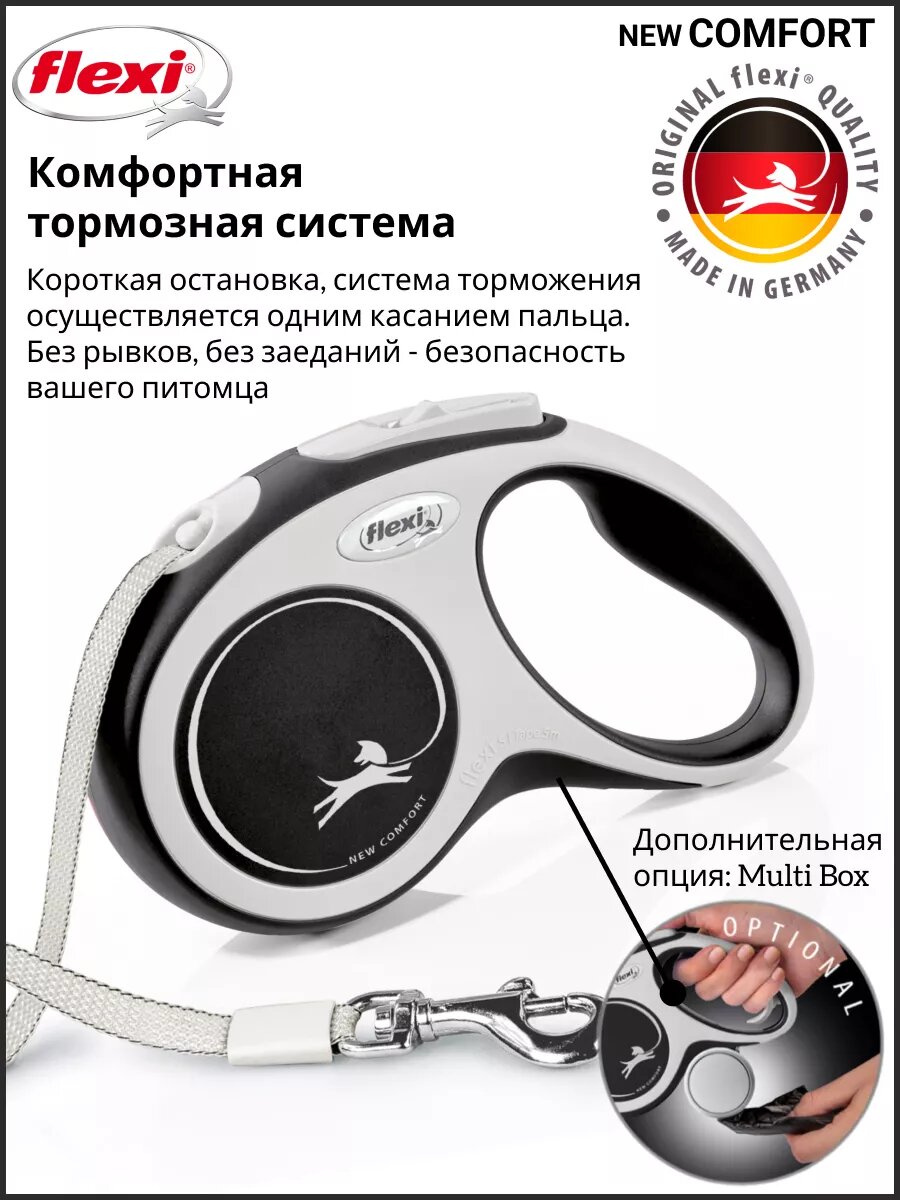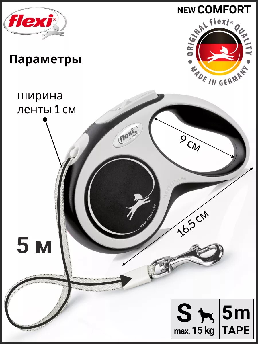 Поводок-рулетка Flexi New Coмfort tape S, 5 м, 15 кг, черный