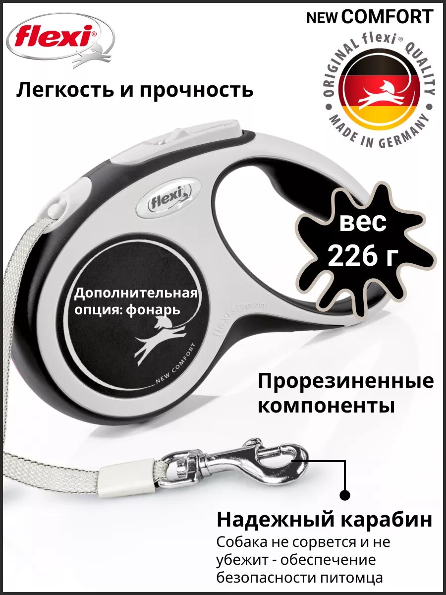 Flexi New Comfort Рулетка для собак весом до 15кг длинна 5м с ремнём