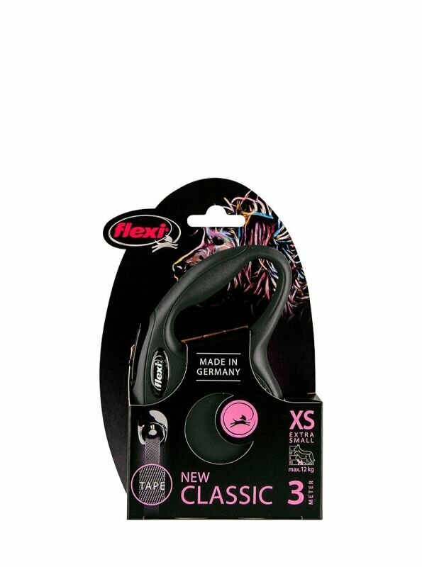 Поводок - рулетка для собак, кошек и других животных Flexi New Classic XS, лента, 3м, до 12 кг, черная