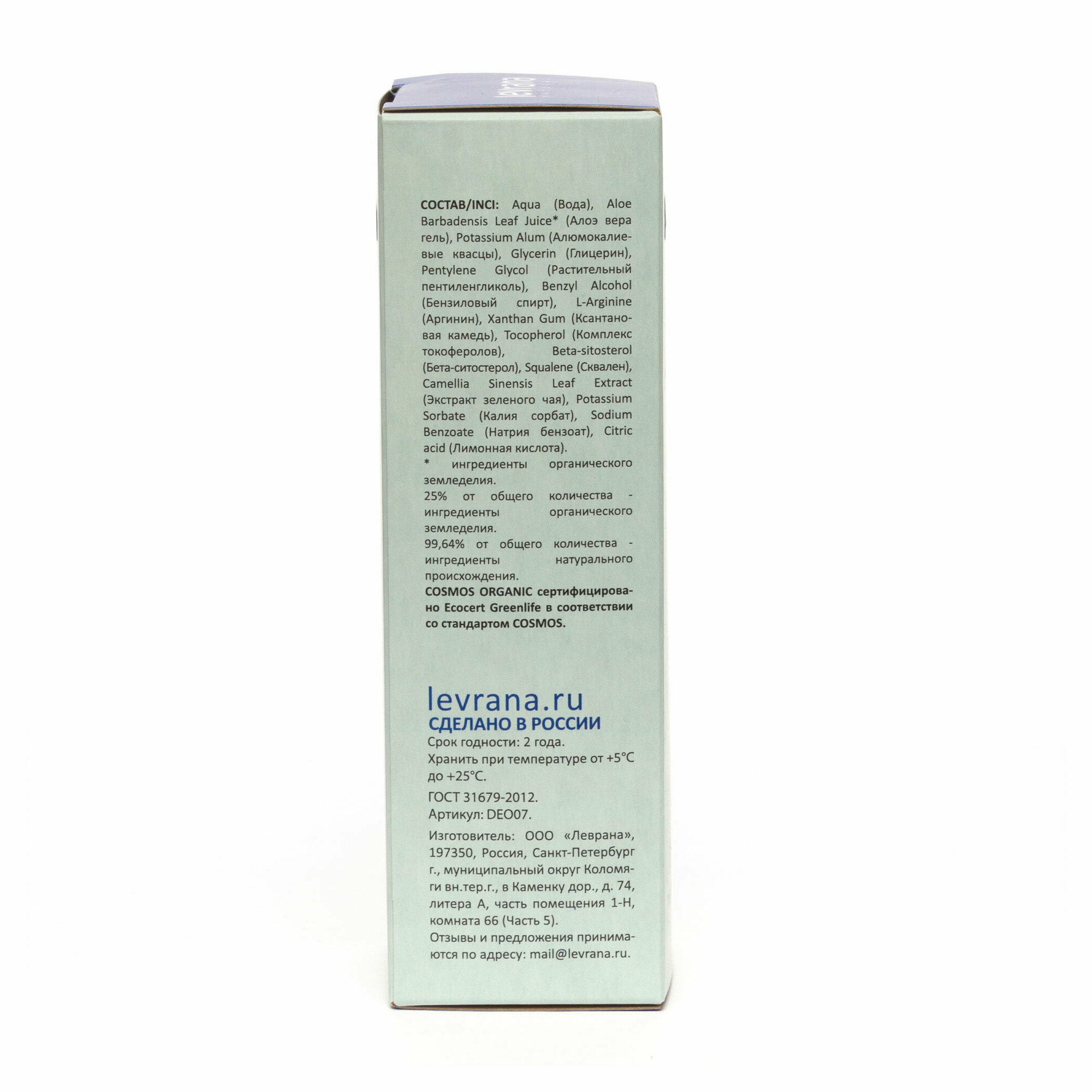 Levrana Дезодорант "ZERO" без запаха 50 мл Cosmos Organic