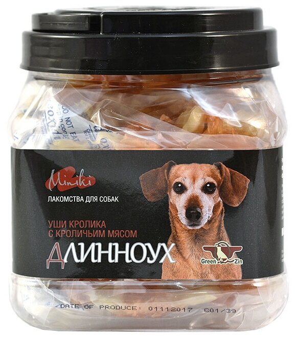 Лакомство для собак Green Qzin Miniki Длинноух, уши кролика с кроличьим мясом для собак мелких пород, 270 г