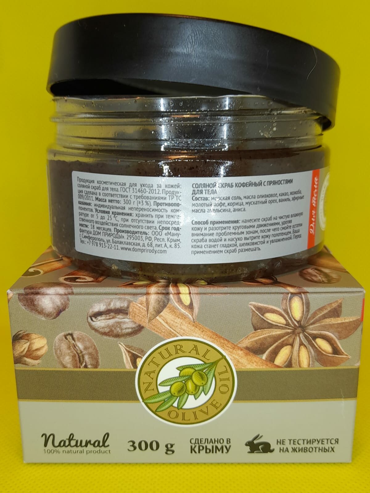 Натуральный соляной Кофейный скраб с пряностями для тела - Мануфактура Дом Природы, 300 г. интересное: