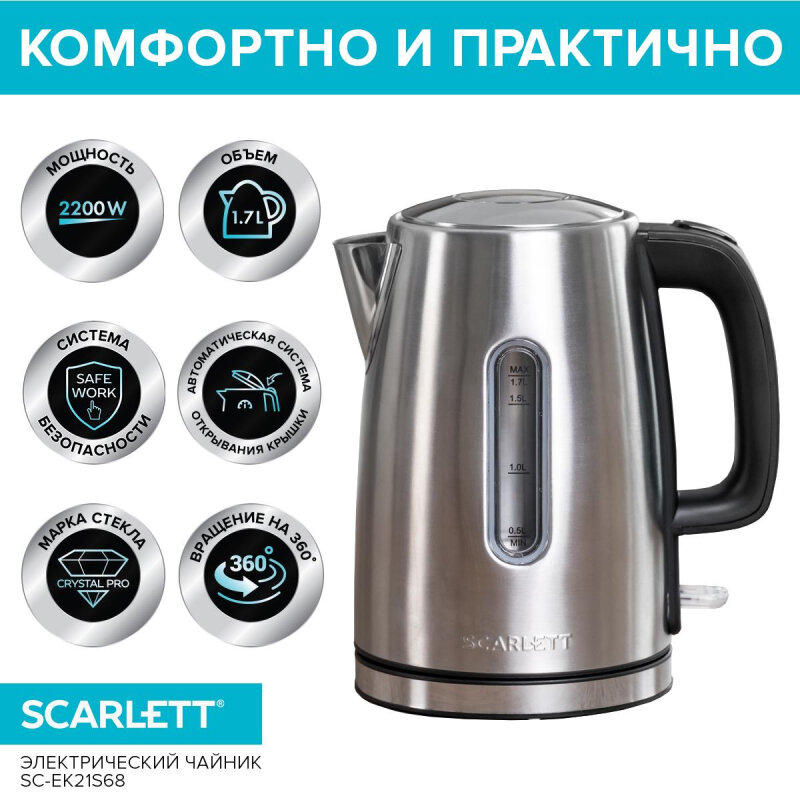 Электрический чайник SCARLETT SC-EK21S68 , 1,7 л интересное: