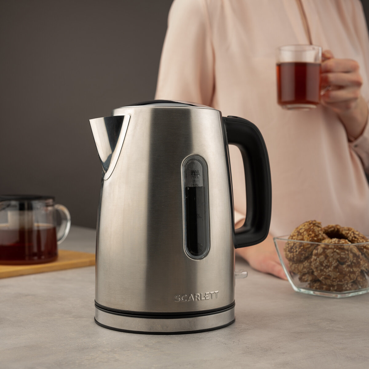 Чайник электрический Scarlett SC-EK21S68 на подставке сталь