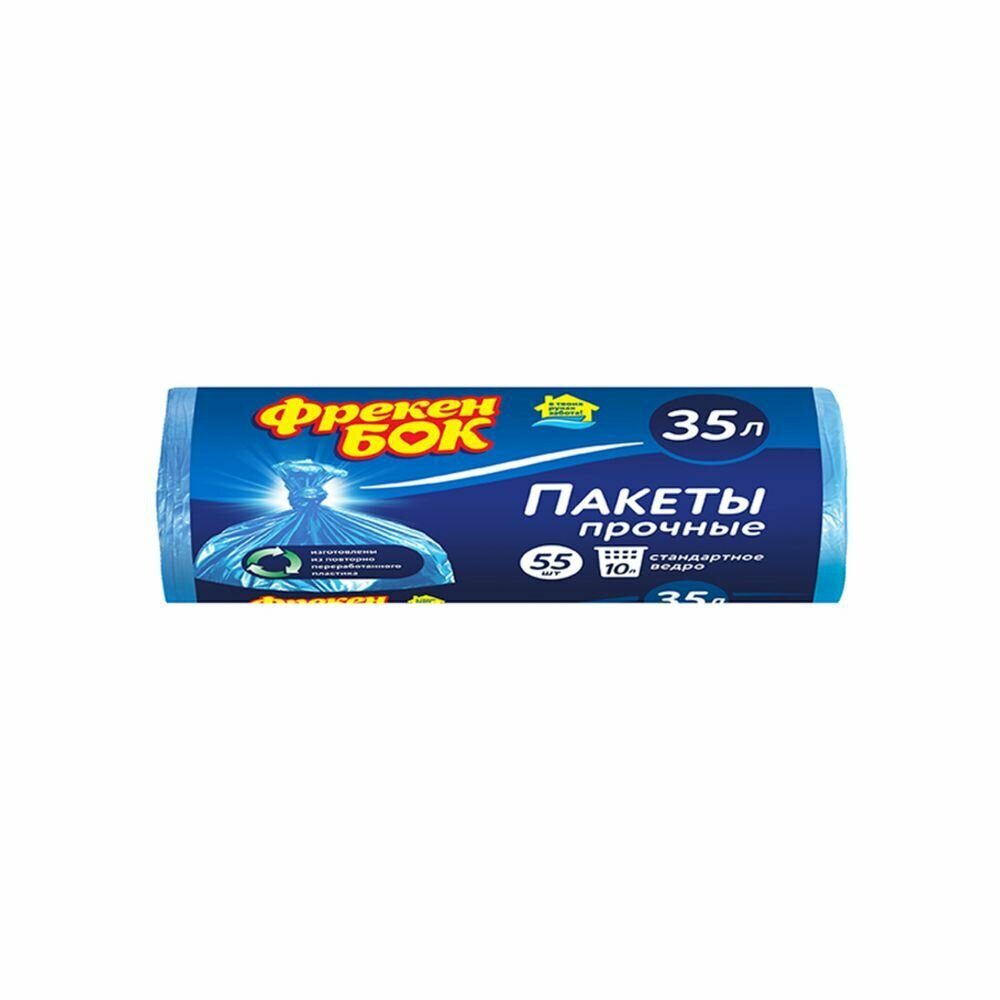 Пакеты для мусора Фрекен Бок Прочные, синие, 35 л, 50х60 см, 6,5 мкм, 55 шт (16115359) интересное: