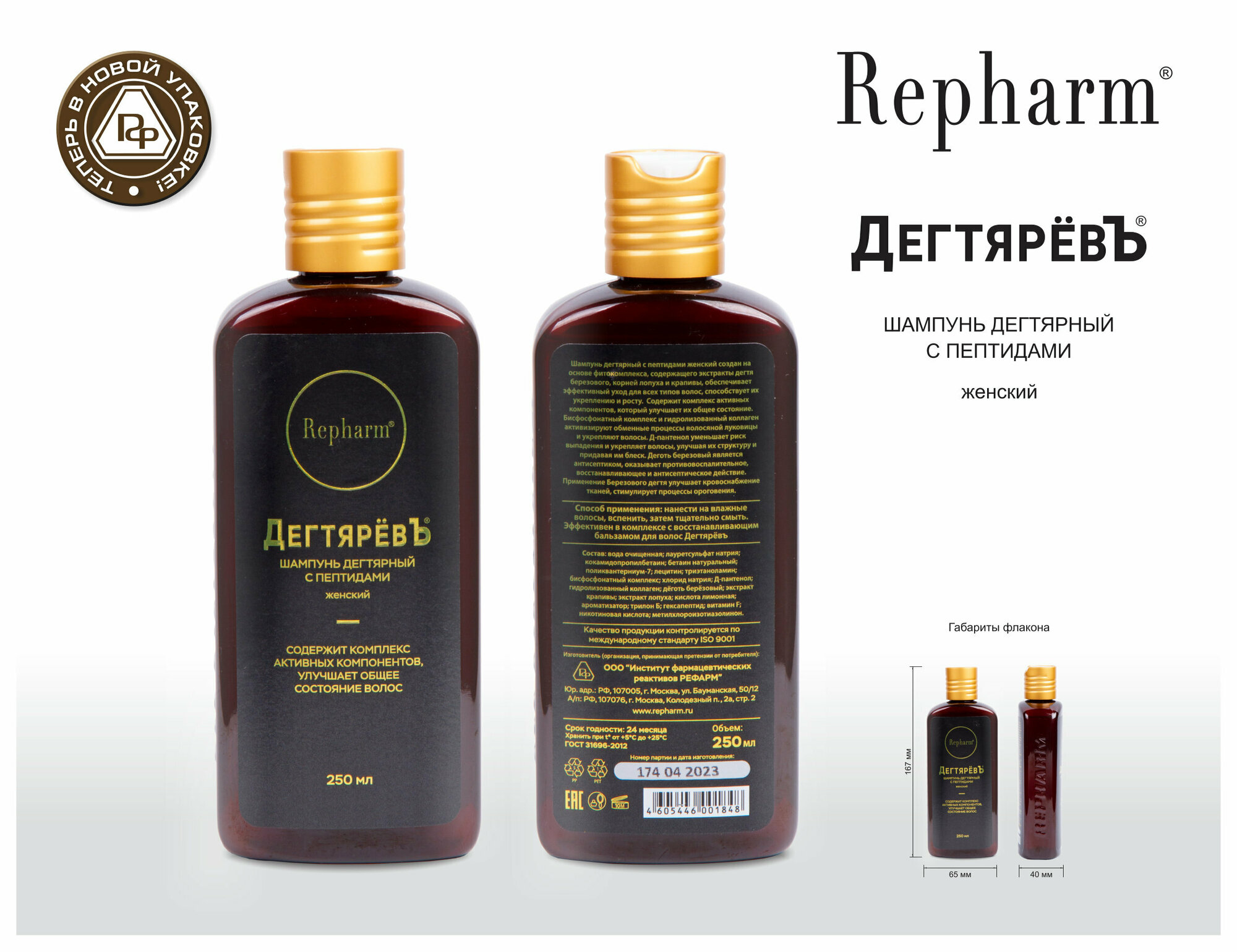 Шампунь Repharm ДегтярёвЪ дегтярный с пептидами женский лечебный (против перхоти), 250 мл интересное: