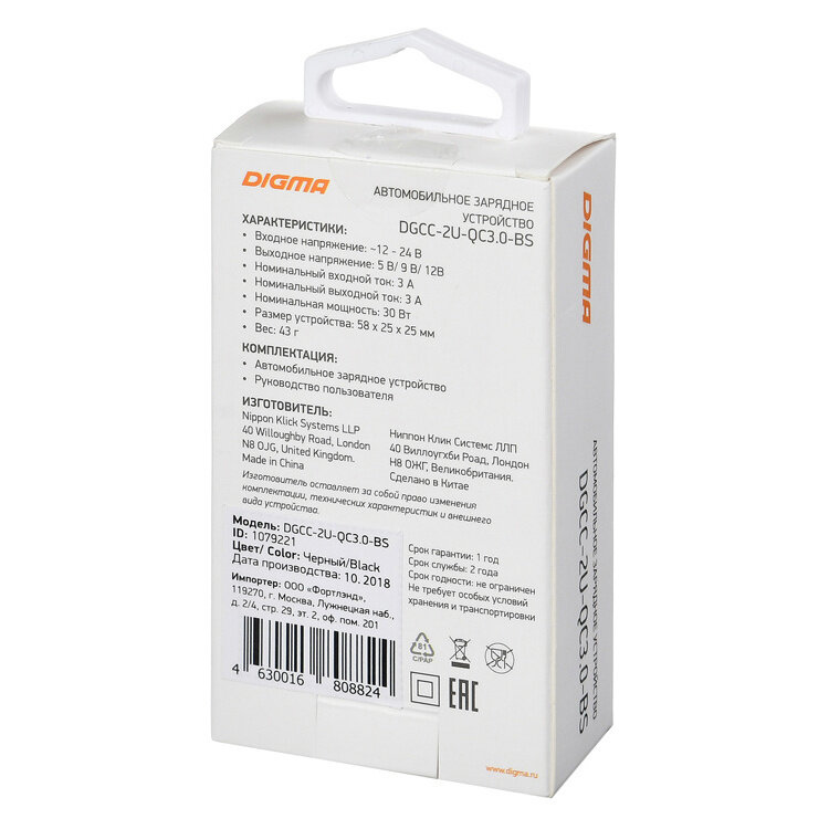 Ниже Вы можете прочитать отзывы на Автомобильное зарядное устройство для смартфона Digma DGCC-2U-QC3.0-BS 5.4A универсальное черный, ознакомится с подробными характеристиками, посмотреть интересные обзоры и фотографии на Автомобильное зарядное устройство для смартфона Digma DGCC-2U-QC3.0-BS 5.4A универсальное черный.