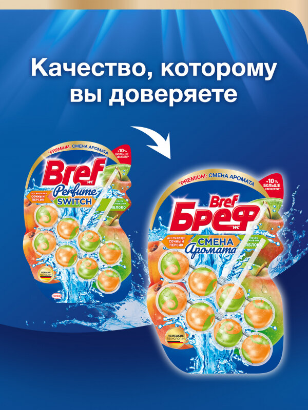 Блок для чистки и свежести унитаза Bref Perfume Switch «Персик и яблоко», 50 г