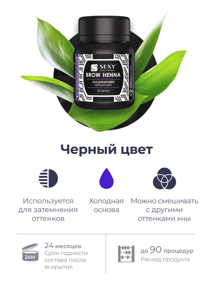 Хна для бровей и ресниц, черный / SEXY BROW HENNA 30 капсул