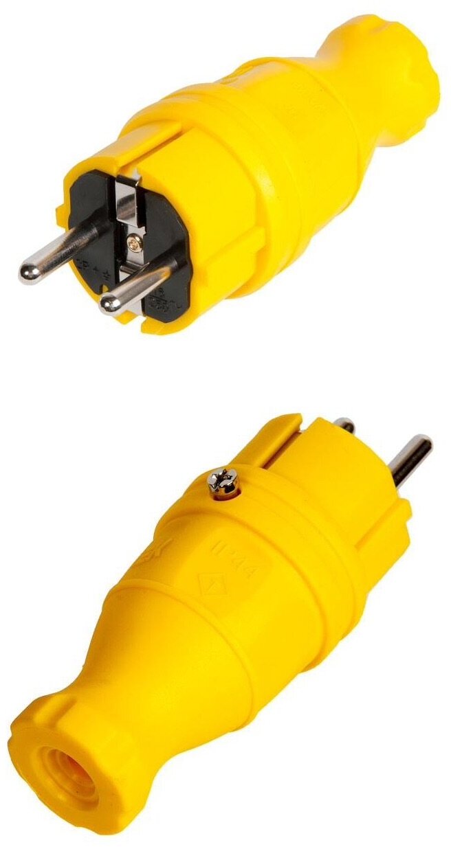 Купить Вилка прямая IEK омега ВБп3-1-0м IP44 каучук желтый, PKR01-016-2-K05
