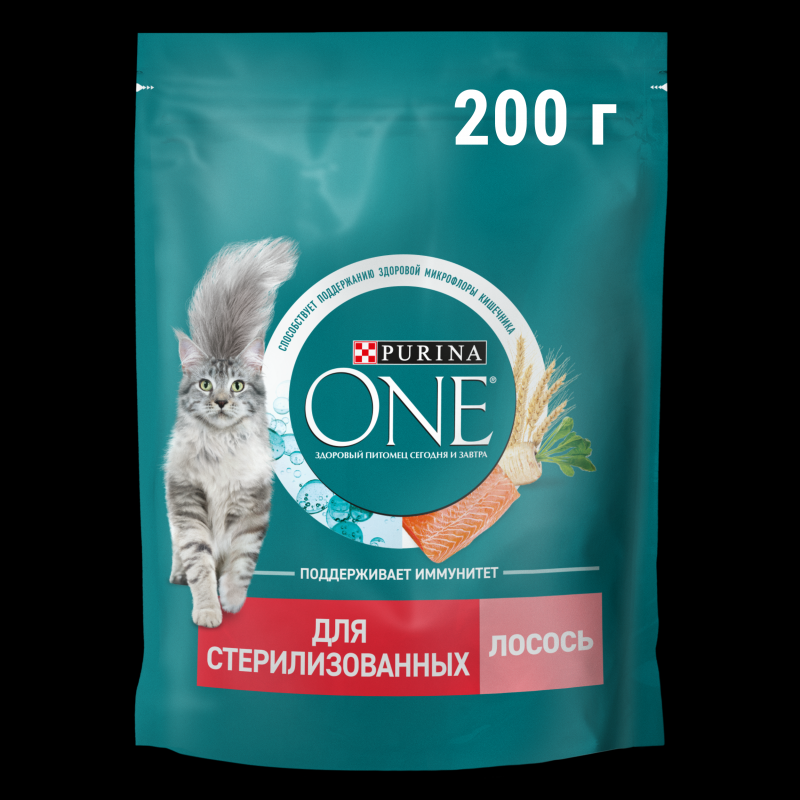 PURINA ONE 200 г сухой корм для стерилизованных кошек и кастрированных котов, с высоким содержанием лосося
