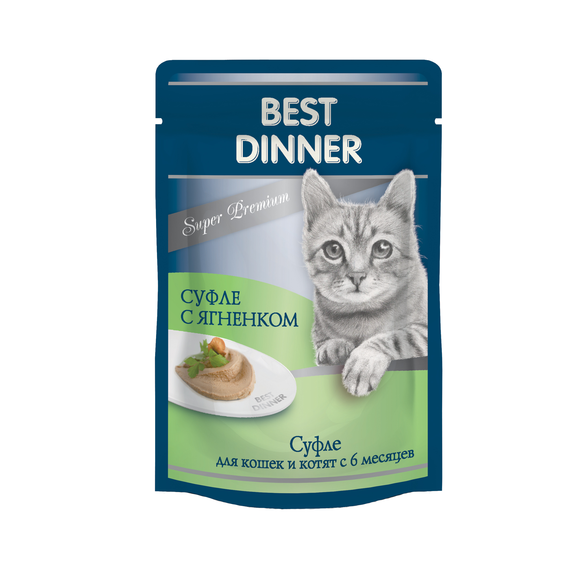 Влажный корм для кошек Best Dinner для кошек и котят с 6 месяца мясные деликатесы суфле с ягненком пауч, 85 г. 24 шт.