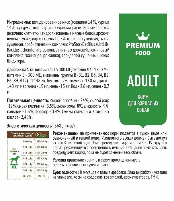 Ниже Вы можете прочитать отзывы на Сухой корм для собак Sirius Adult с говядиной и овощами 15 кг., ознакомится с подробными характеристиками, посмотреть интересные обзоры и фотографии на Сухой корм для собак Sirius Adult с говядиной и овощами 15 кг..