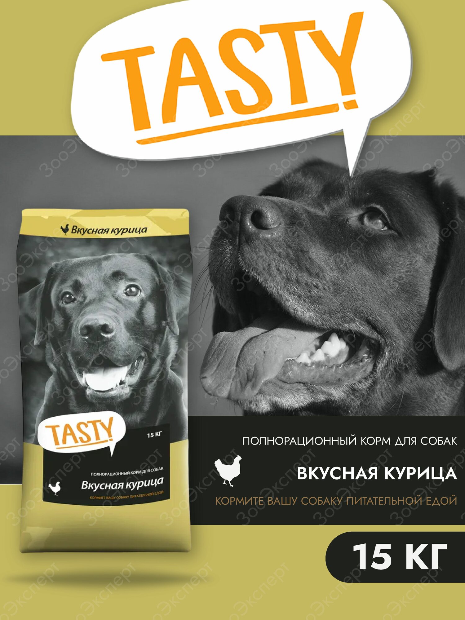 Сухой корм для собак TASTY, вкусная курица, 15кг