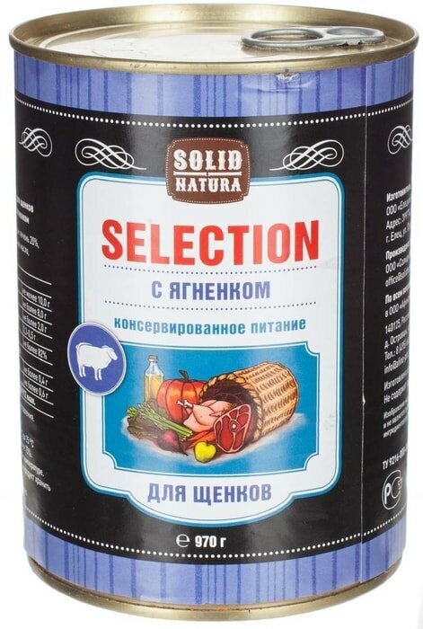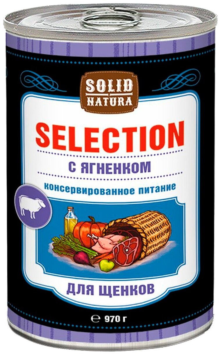 Влажный корм для щенков, Solid Natura Selection, ягненок, упаковка 6 шт х 970 г