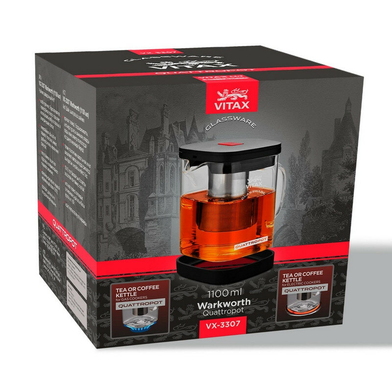 Vitax Заварочный чайник Warkworth VX-3307 1,1 л, прозрачный/черный
