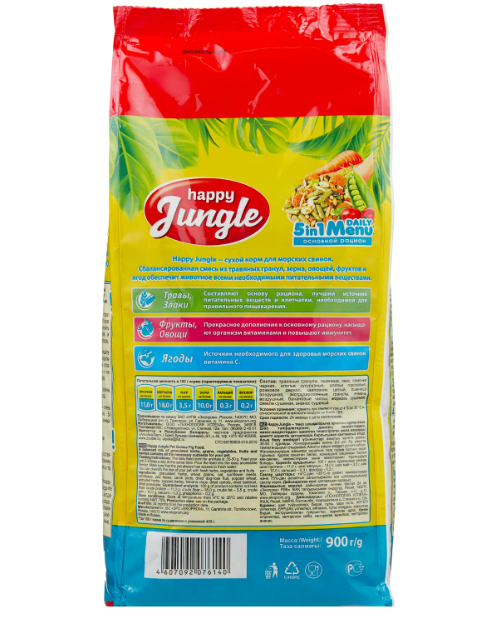 Корм для морских свинок Happy Jungle 5 in 1 Daily Menu Основной рацион , 900 г
