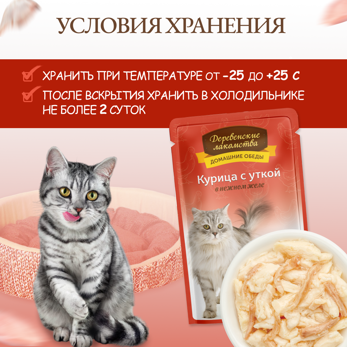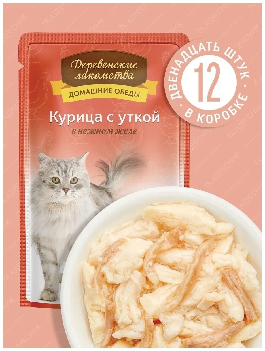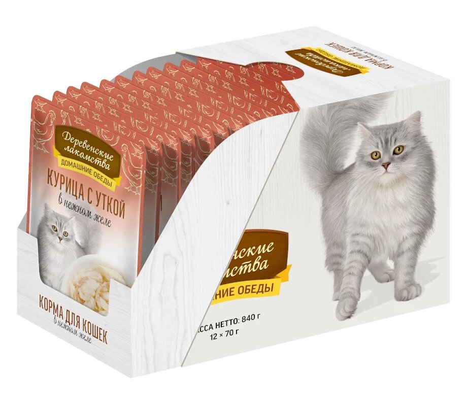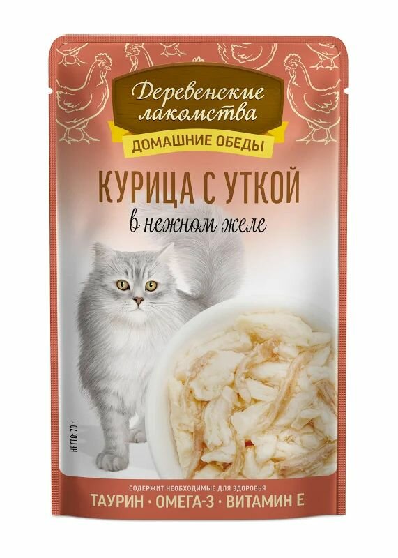Корм для кошек деревенские лакомства Курица с уткой в нежном желе пауч 70г (упаковка - 12 шт)