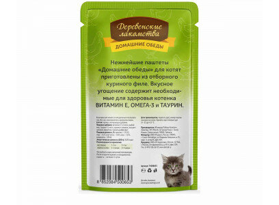 Деревенские лакомства Домашние обеды 70г отборный цыпленок, паштет д/котят (74500653)