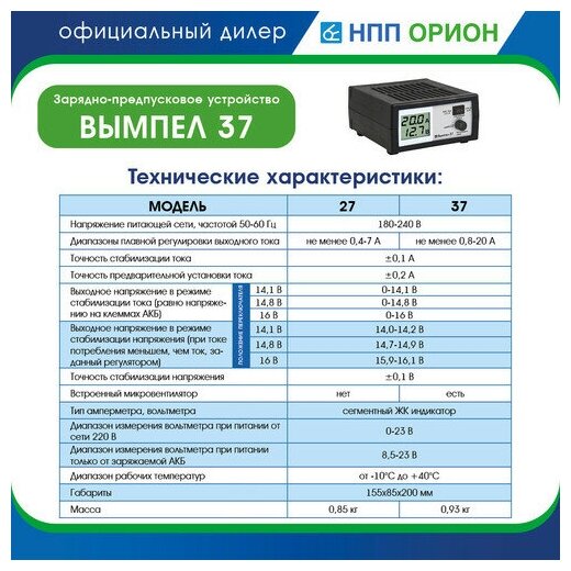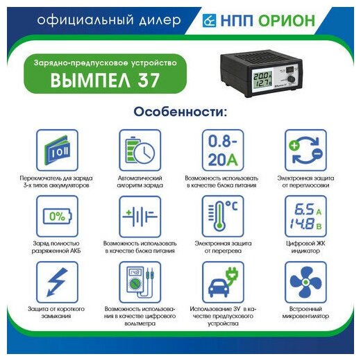 Зарядное устройство орион ВЫМПЕЛ-37 0-20А 14.1/14.8/16В
