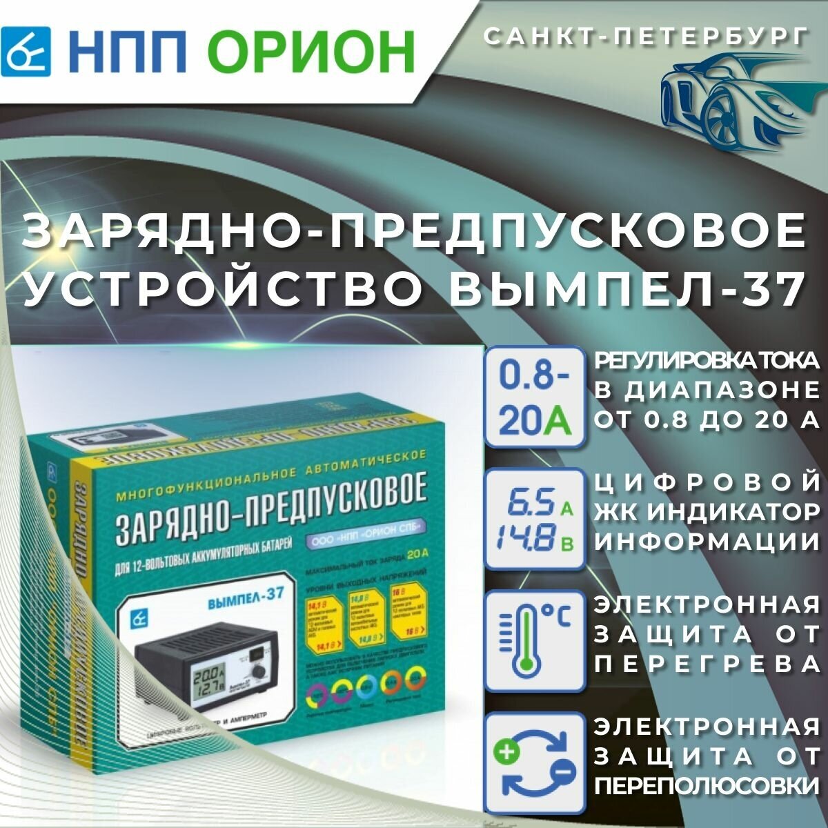 НПП «Орион» Зарядно-предпусковое устройство "Вымпел-37" 0.8-20 А,12 В, для всех типов АКБ