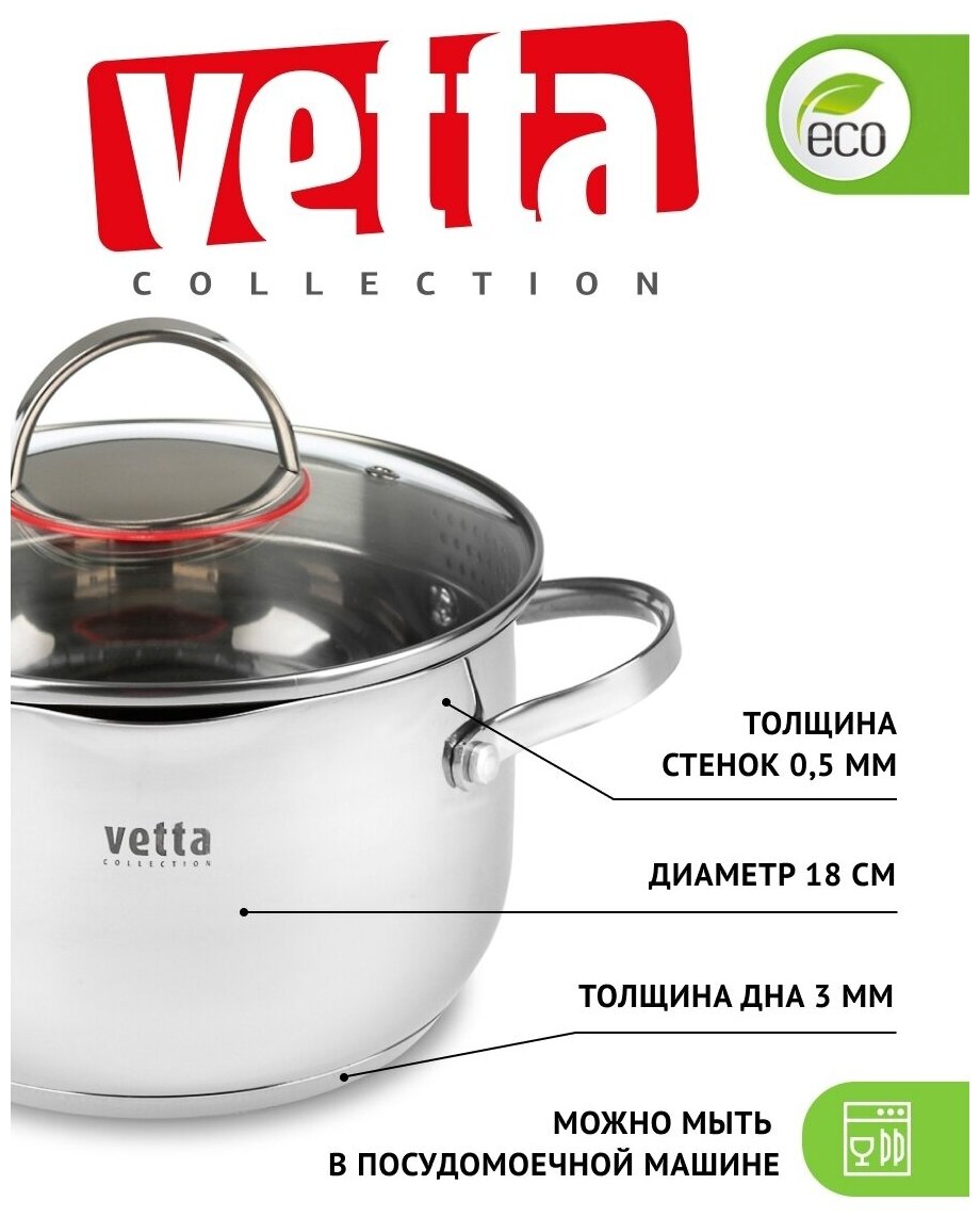 Кастрюля со стеклянной крышкой Vetta Бирмингем, 2,7 л, нержавеющая сталь, для индукционной плиты