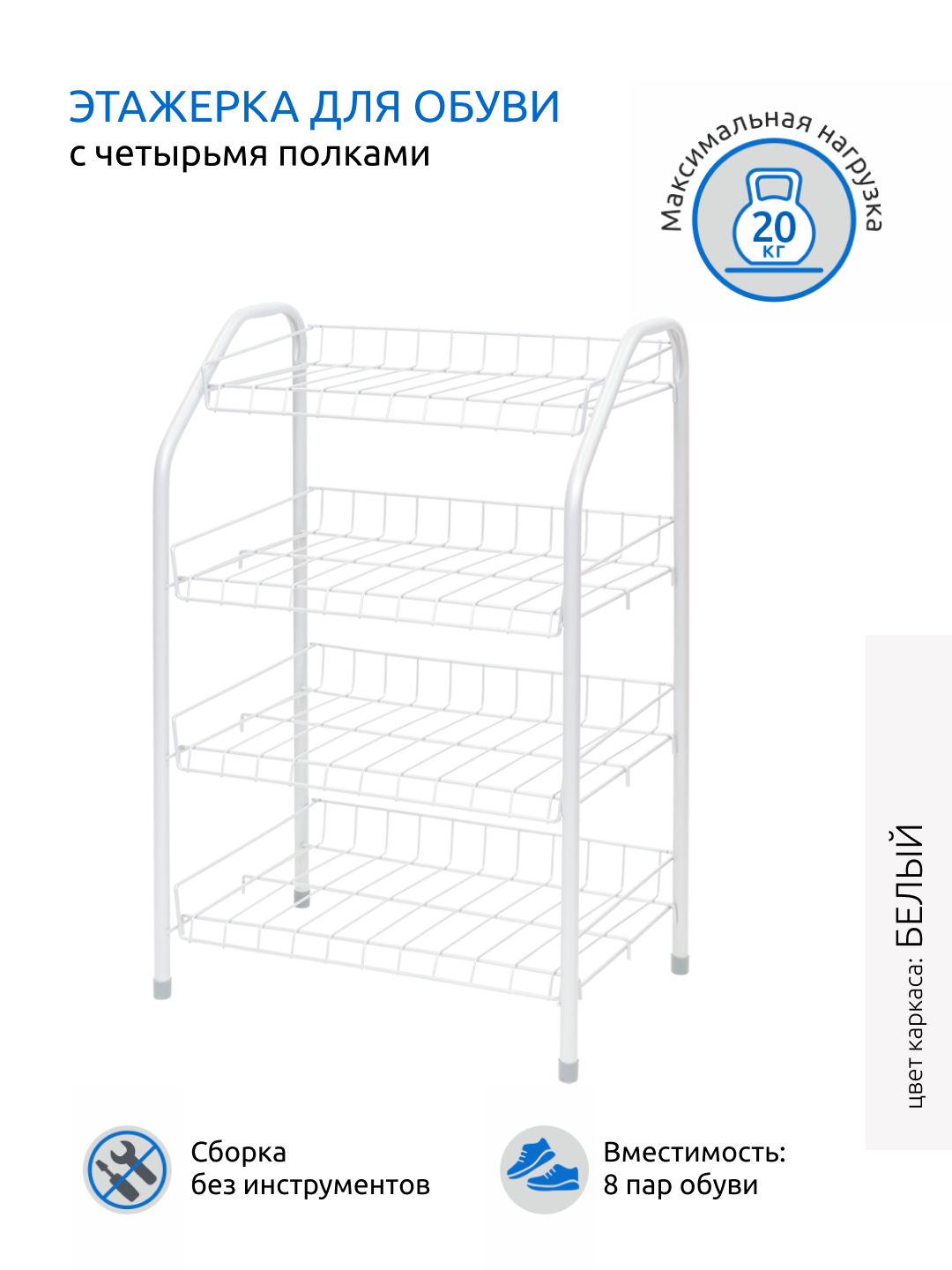 Этажерка д/обуви Nika ЭТ2/МБ 46х28х70см 4 полки сталь, белый