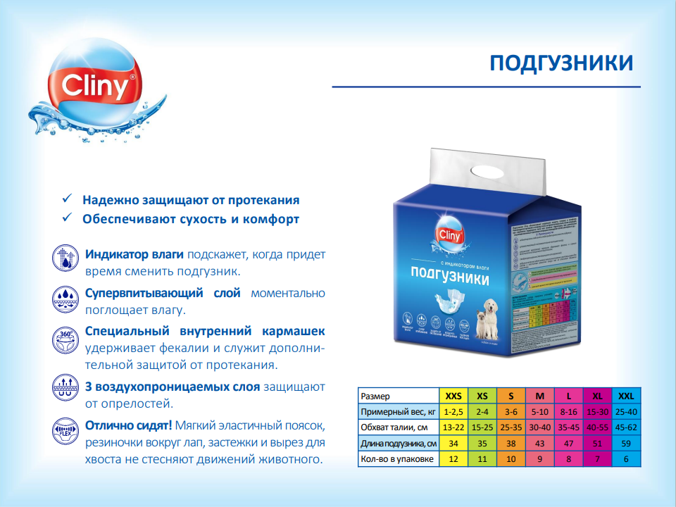 CLINY Подгузники М ( 5-10кг) для собак и кошек, 9шт./уп.