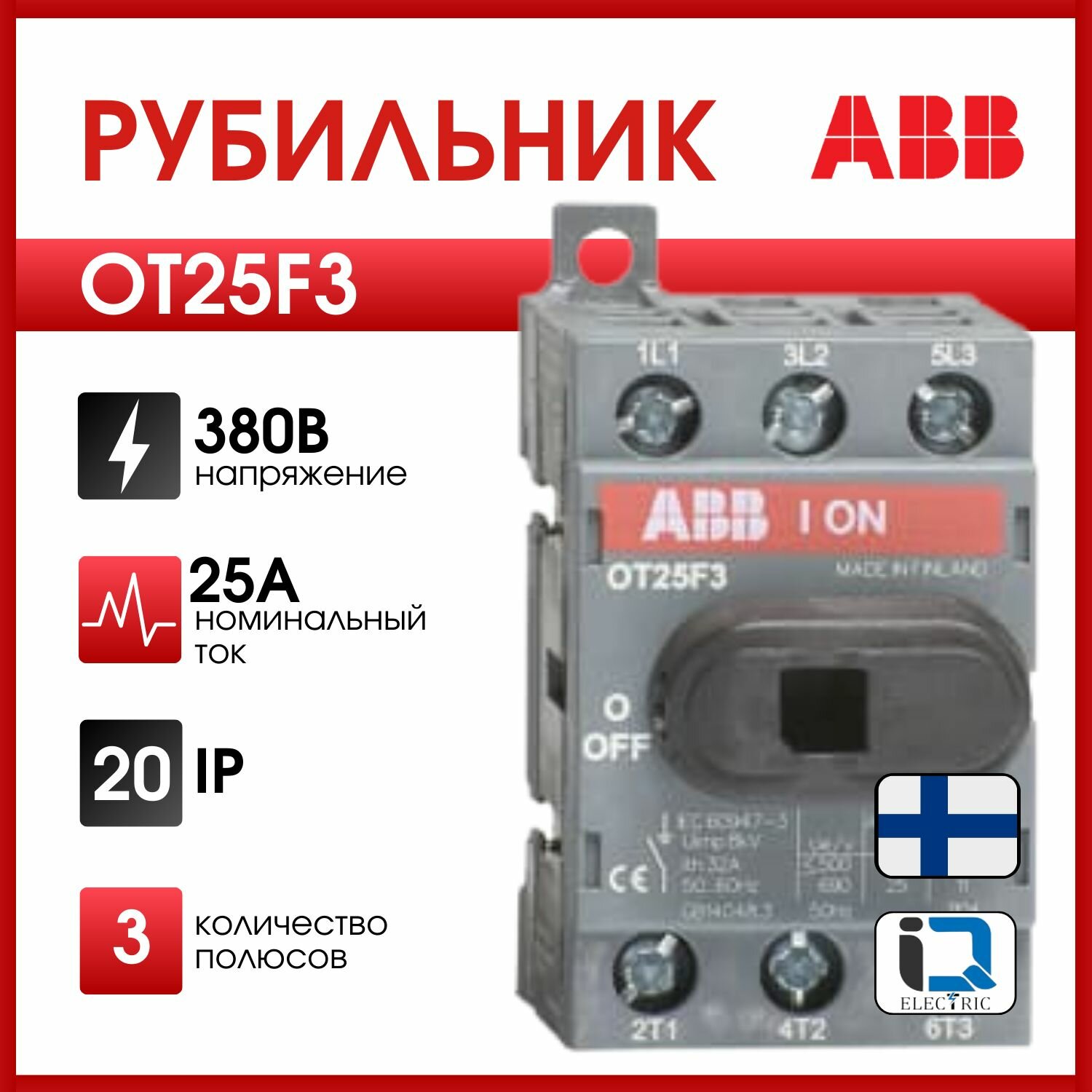 Рубильник ABB 3P OT25F3 25А на DIN-рейку (с ручкой) 1шт (арт. 1SCA104857R1001)