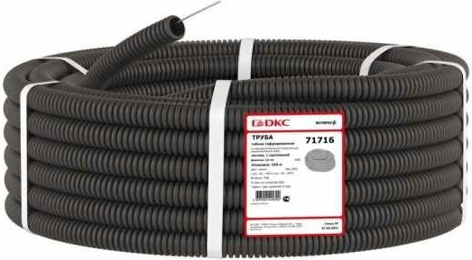 Труба гофрированная DKC ПНД d16мм с протяжкой черн. (уп.100м) 71716