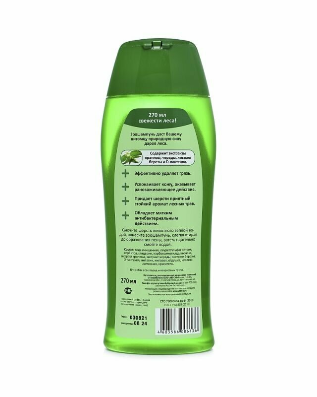 Лесной зоошампунь с кондиционером и экстрактами лекарственных растений для собак, 270 мл