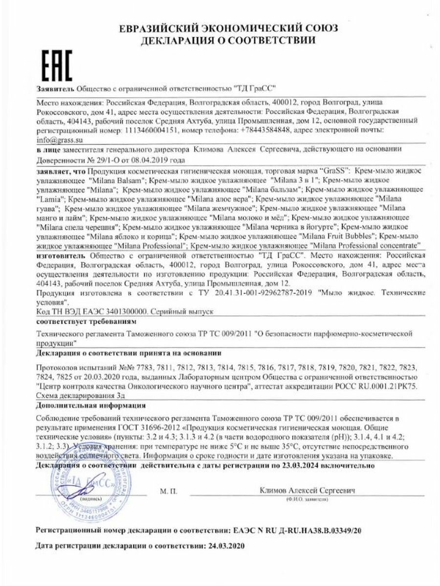 Жидкое Крем-Мыло Milana Спелая Черешня С Дозатором 126400 0,5 Л GraSS арт. 126400