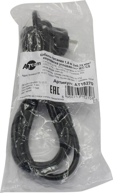 Кабель Atcom CEE 7/7 - IEC C5 (AT15270), 1.8 м, черный