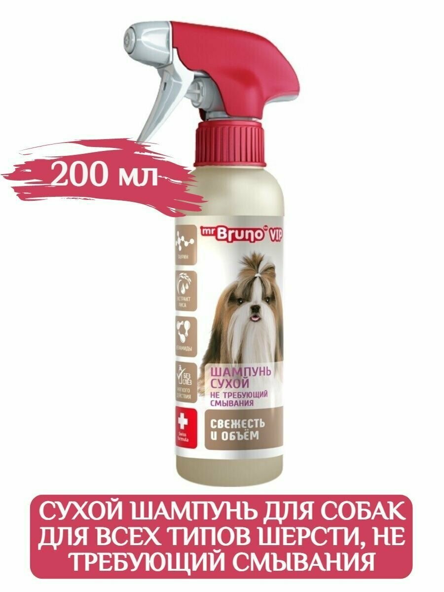 Купить Сухой шампунь для собак Mr. Bruno VIP, для экспресс-очищения шерсти, 200 мл