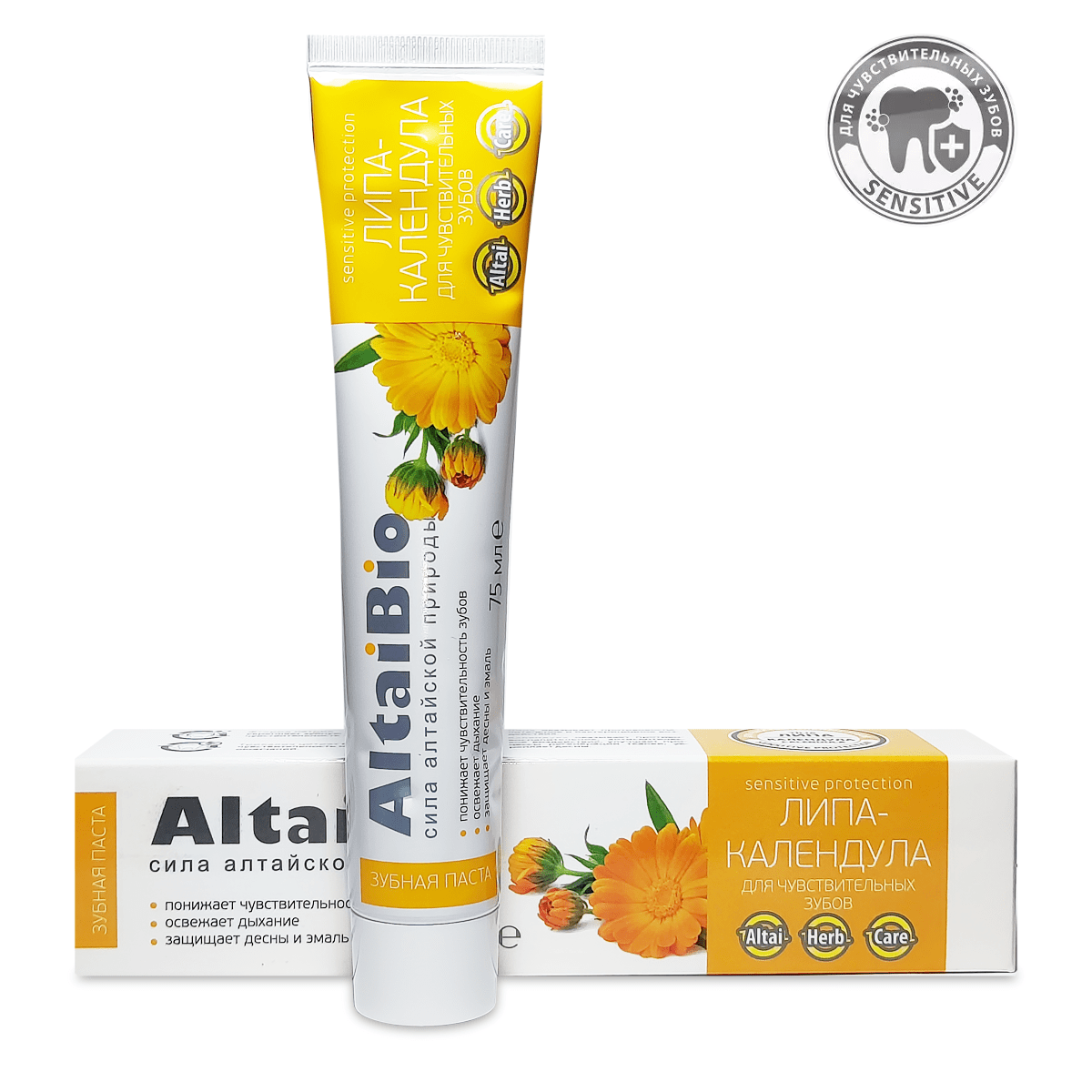 AltaiBio, Зубная паста для чувствительных зубов Липа-Календула, 75 мл
