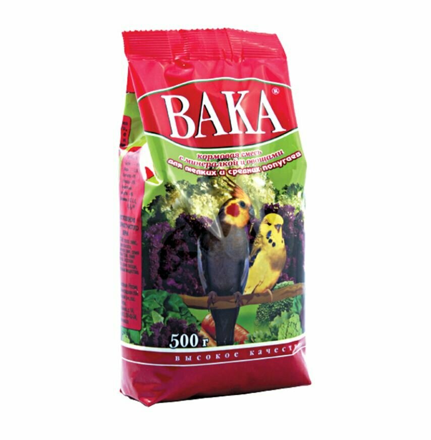 Вака высокое качество корм для маленьких и средних попугаев с минералами и овощами (500 гр)