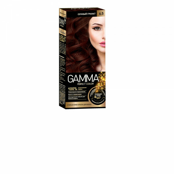 Gamma / Гамма Крем-краска для волос стойкая тон 6.5 сочный гранат с пантенолом без аммиака 115мл / красящее средство