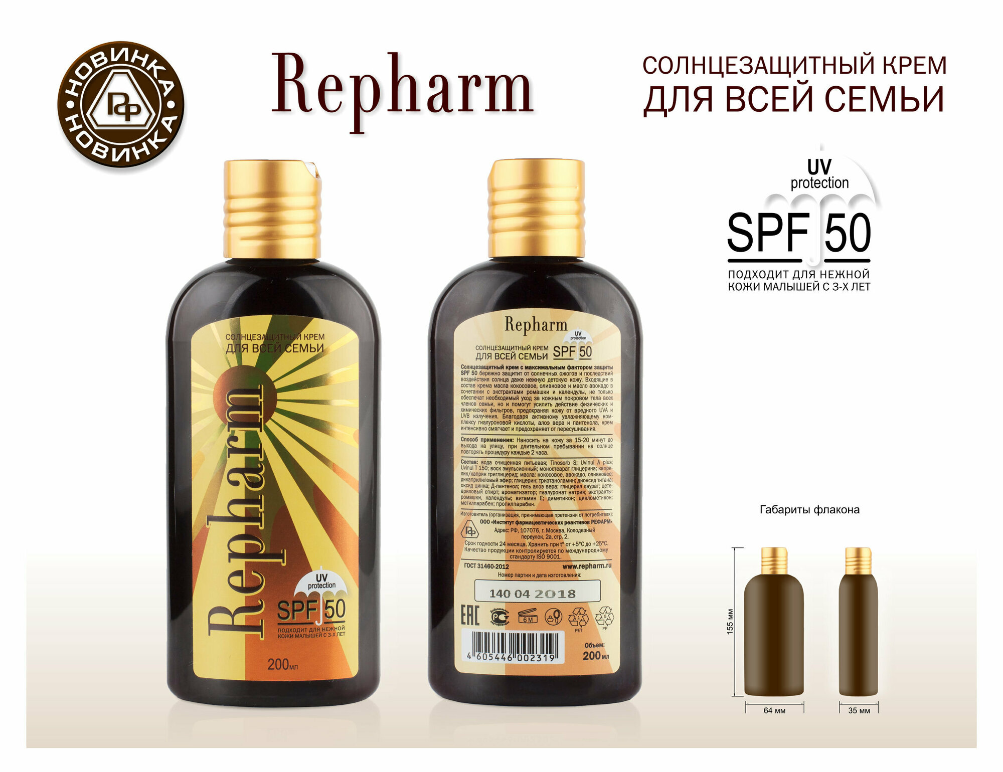 Repharm Солнцезащитный крем для всей семьи SPF 50 интересное: