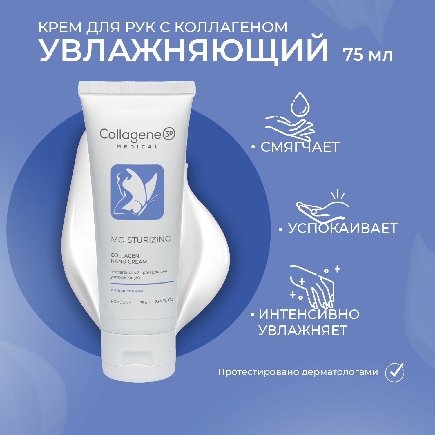 Medical Collagen 3D, Крем для рук «Увлажняющий», 75 мл