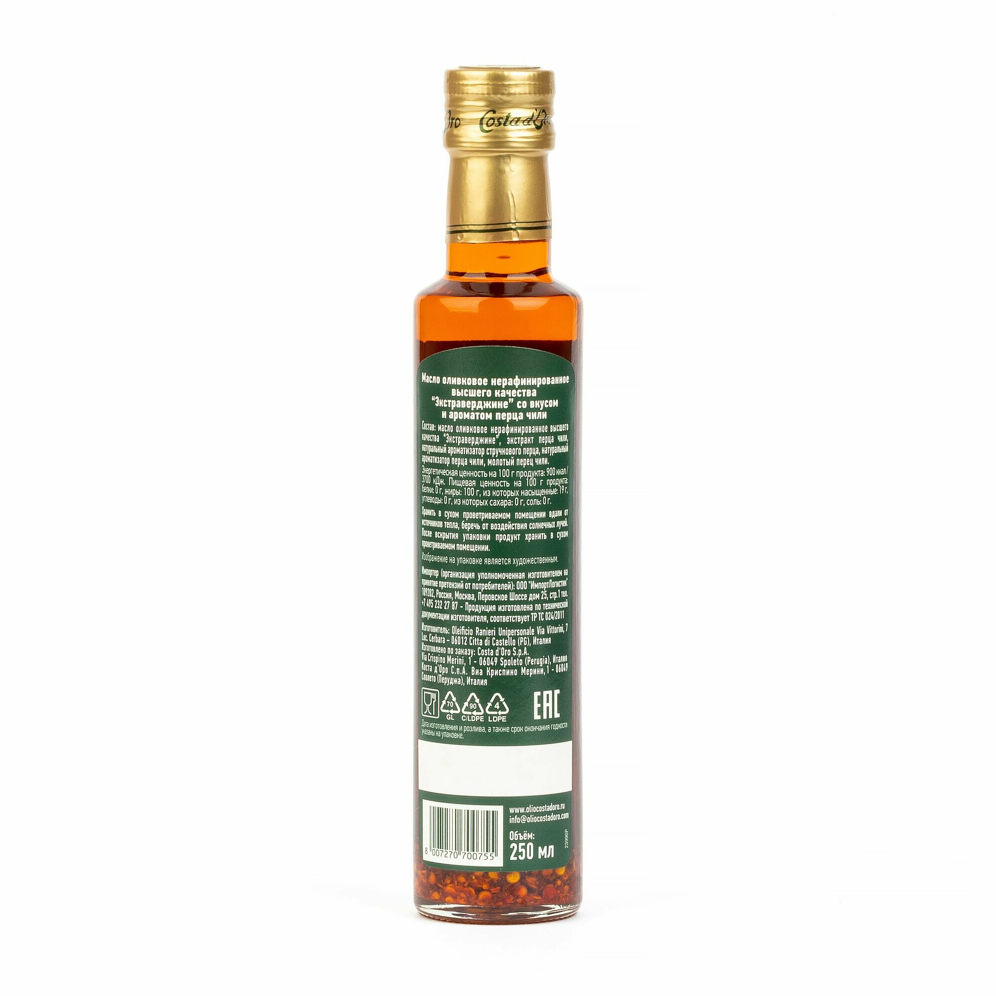СохранитьМасло оливковое COSTA D'ORO Extra Virgin нерафинированное высшего качества со вкусом и ароматом перца чили 250 мл стеклянная бутылка интересное: