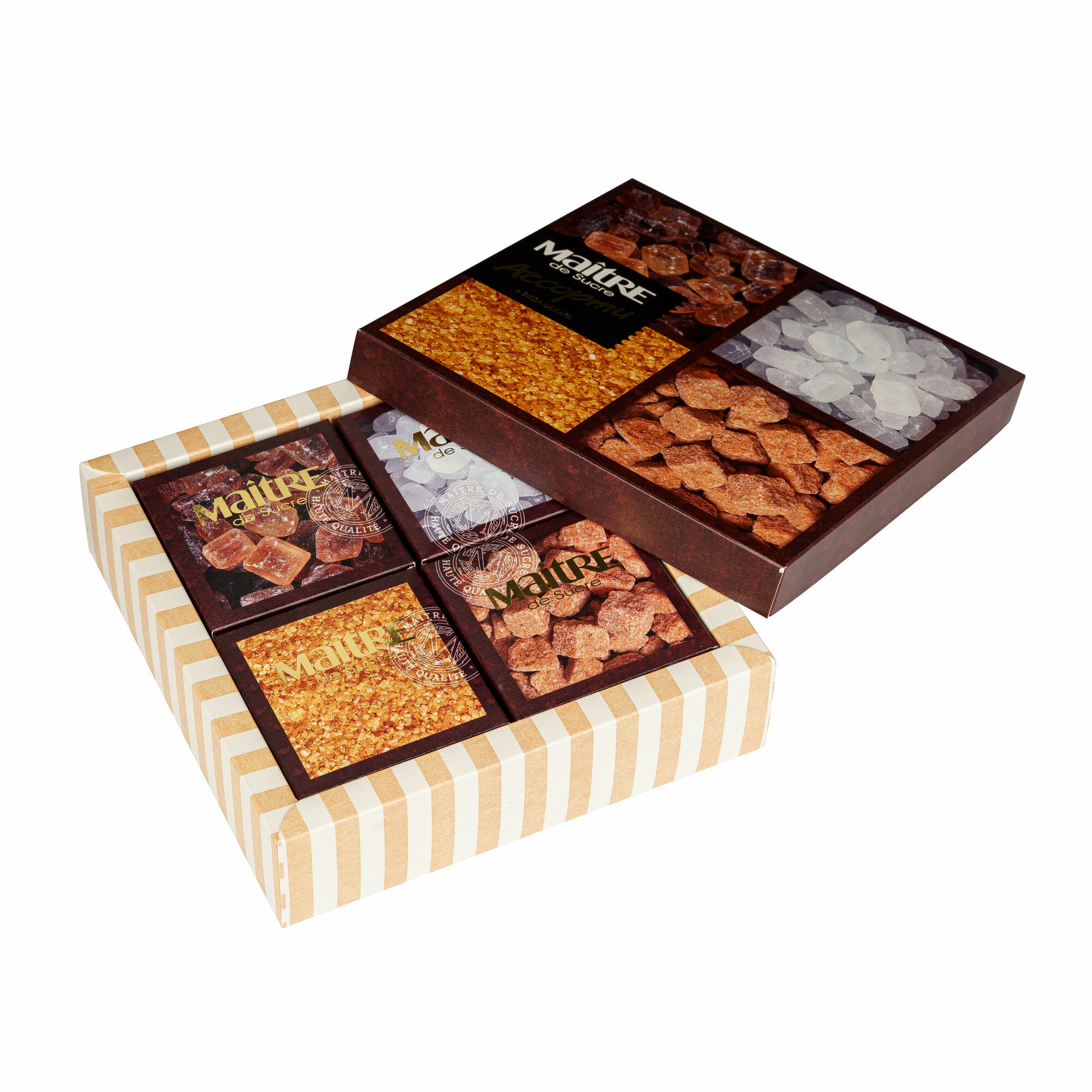 Купить Набор сахара подарочный Maitre de Sucre ассорти: тростниковый, леденцовый, кусковой, демерара мэтр 385г