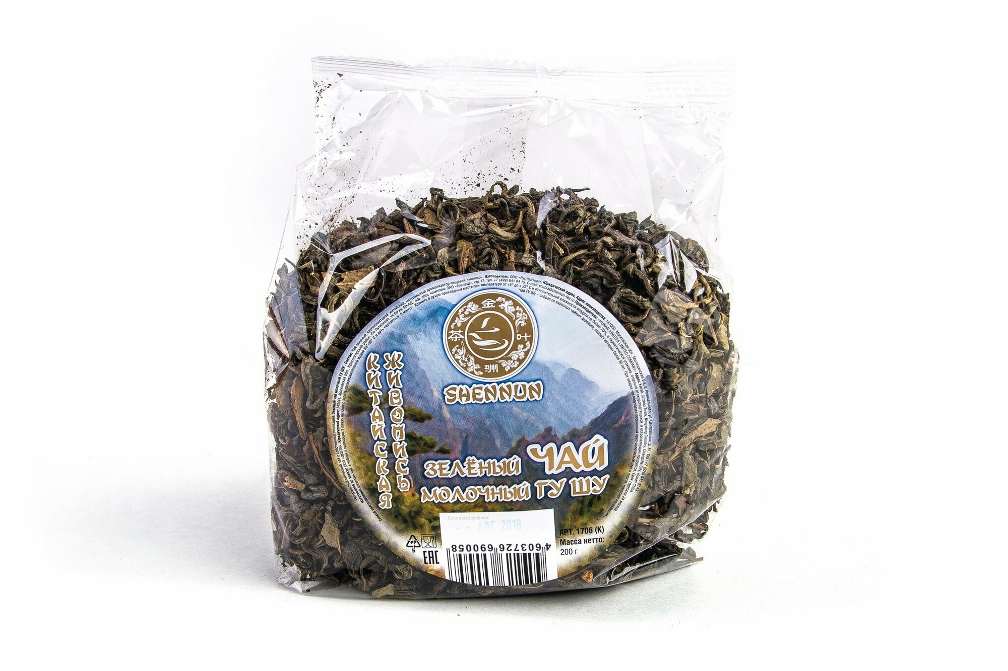 Зеленый китайский крупнолистовой чай в прозрачном пакете SHENNUN, молочный ГУ ШУ, 200 г./В упаковке шт: 1